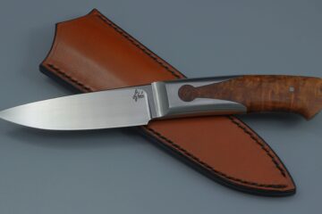 This one has a handle made out of G10 and a piece of stabilized mazur birch. Steel is N690 – leftover.